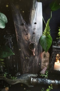 The chain also holds faceted smoky quartz, along with garnet and hematite for some real extra grounding energy. This piece is so protective and brings you back down to earth ten fold.