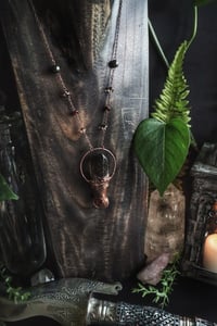 In a world that moves so fast, we all need moments to come back to our center and put our feet back on the ground. This amulet is all about grounding and getting your feet back on the ground. Combining a deer toe bone with a stunning deep dark smoky quartz, the energy here is telling you to sit down and come back home.